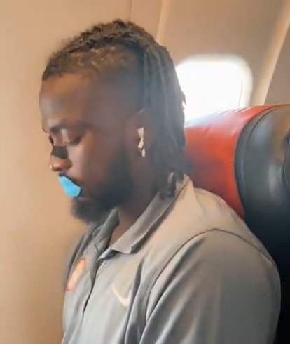 The 6ft6in striker, who towered over Rwanda’s defence in his Super Eagles debut last week, stepping in for the injured Victor Osimhen, looked anything but imposing in sleep, his face framed by the odd dual-tape contraption.