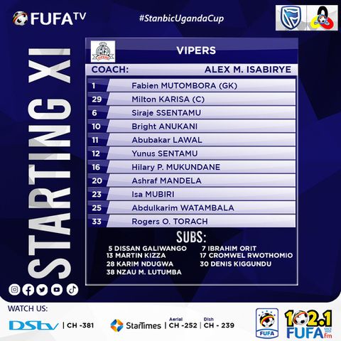 Vipers starting XI against Police on their quest for a maiden domestic double