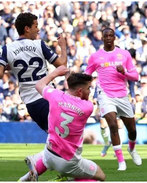Joe Aribo (left) watches on as Johnson scores for Tottenham.