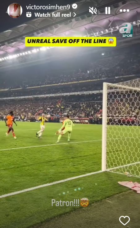 Clearly impressed, Osimhen reposted the clip on his Instagram story, adding the caption “Patron” alongside a shocked emoji—a nod to Sánchez’s commanding presence and the disbelief at the quality of the intervention.
