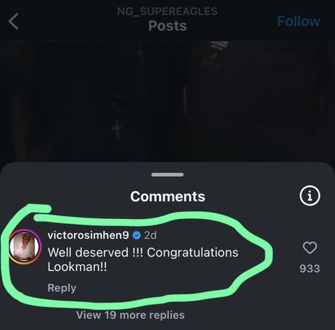 The fact is that Victor Osimhen congratulated Lookman for his win. He did this via the comments section of the Super Eagles' official Instagram. He said: “Well deserved!!! Congratulations Lookman!!”