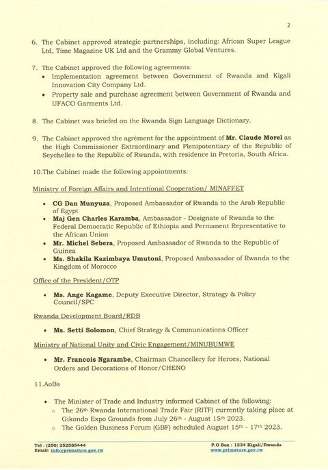 Rwandan cabinet last week passed a strategic partnership to host the African Super League headquarters in Kigali.