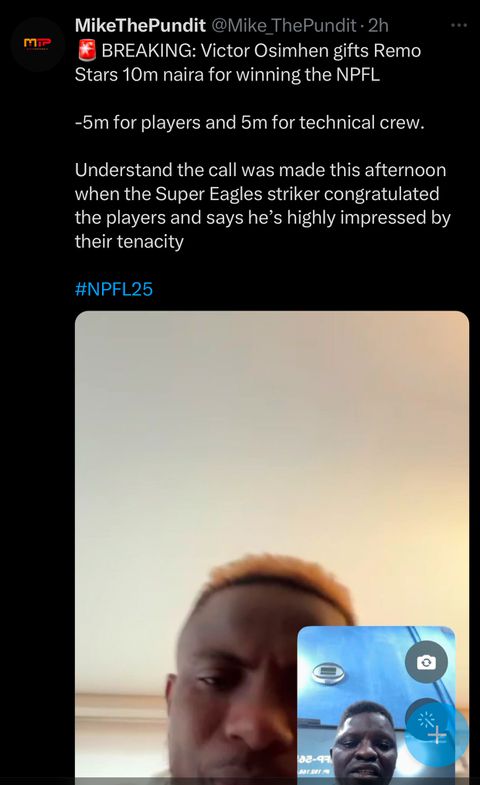 Osimhen expressed his admiration for the team's tenacity, which impressed him greatly. This gesture showcases his support for Nigerian football and his pride in Remo Stars' achievement.