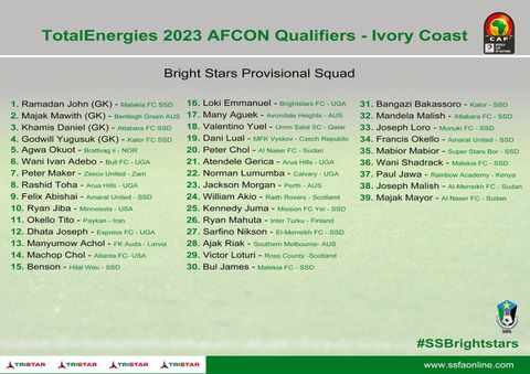 South Sudan national team coach Stefano Cusin has summoned seven Ugandan-based players to his squad ahead of their matchday three and four double-headers against Congo in the 2023 Africa Cup of Nations Group G qualifiers.