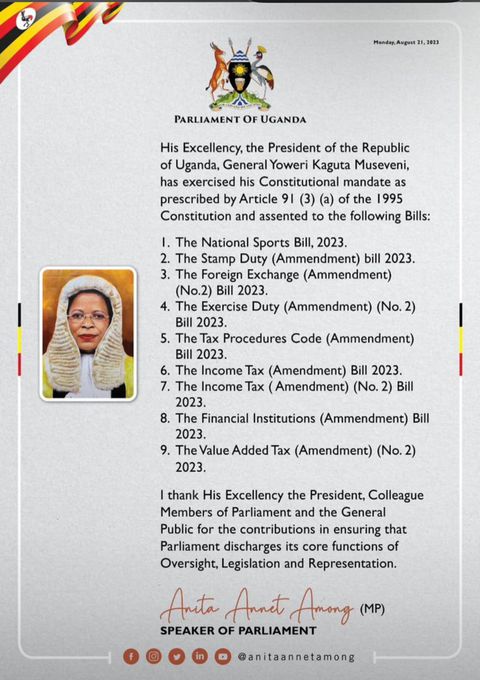 The President of Uganda, H.E Yoweri Kaguta Museveni, has finally assented to the National Sports Bill 2023.