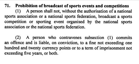 Article 71 further restricts the unauthorised broadcast of sports events or competitions organised by national sports associations or federations.