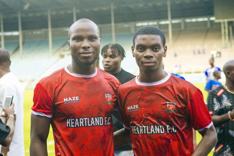 Chijioke Mbaoma (left) before his debut for Heartland in the NPFL.