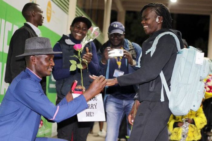The heartwarming proposal received an outpouring of support from fans and well-wishers, including Moraa’s fellow athletes, who were present at the airport to witness the emotional moment.