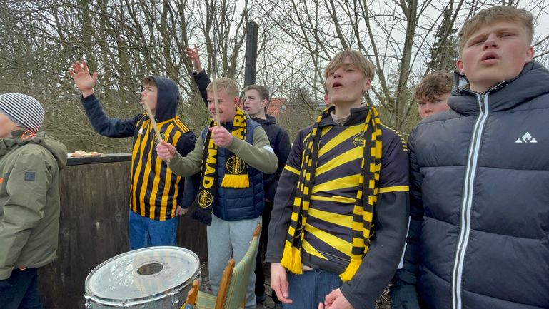 Young fans of Fremad cheering Shola Akinlade on his visit to Aarhus, Denmark