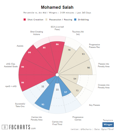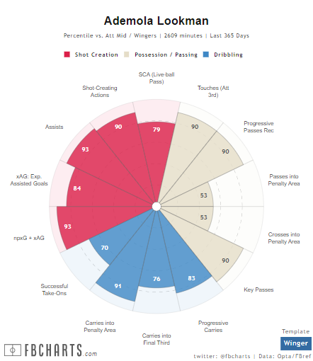 Lookman leads Salah in shots per 90 minutes (3.66-3.12), non-penalty goals per 90 minutes (0.48-0.44) and non-penalty expected goals plus expected assisted goals per 90 minutes (0.88-0.87), and could be on the Egyptian’s level if he just manages to beat the niggling injuries that have recently plagued him.