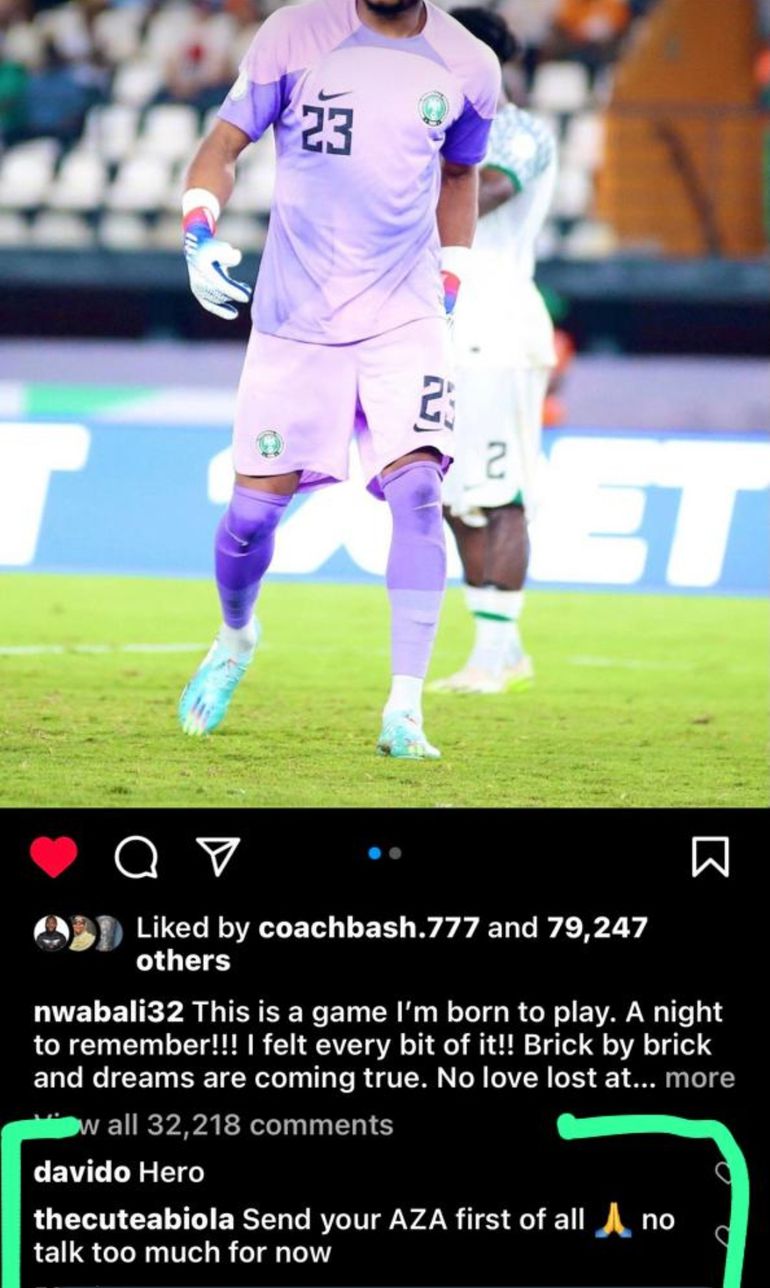 Commenting on Nwabali's Instagram post for his unbelievable performance, Iheme gave an offer that has got everyone talking.