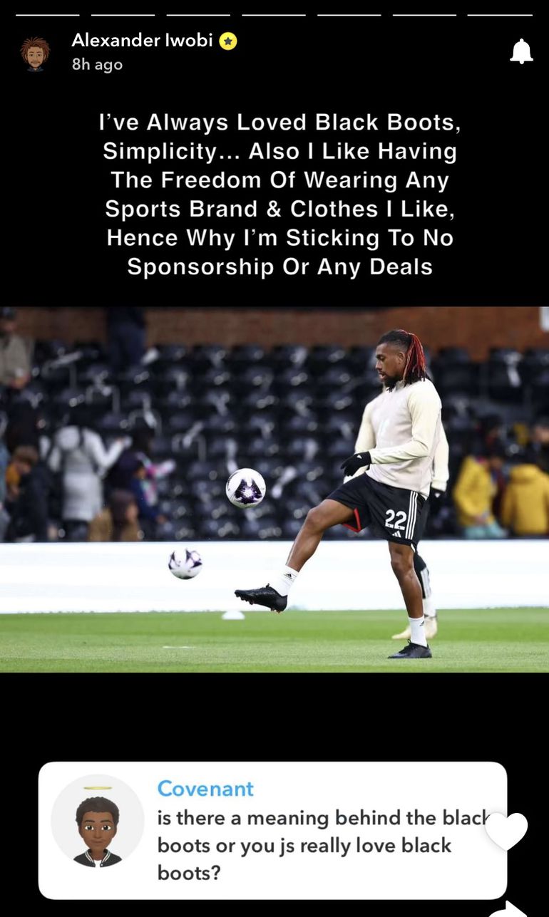 In a conversation sparked by a fan's inquiry about his preference for black boots, Iwobi emphasized his affection for simplicity, stating,