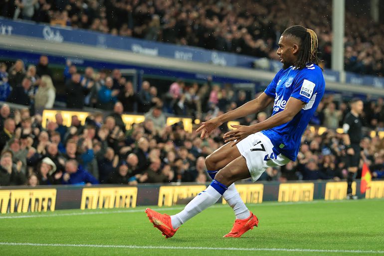 Alex Iwobi celebrates scoring for Everton against Newcastle United in 2022 (Credit: Imago)
