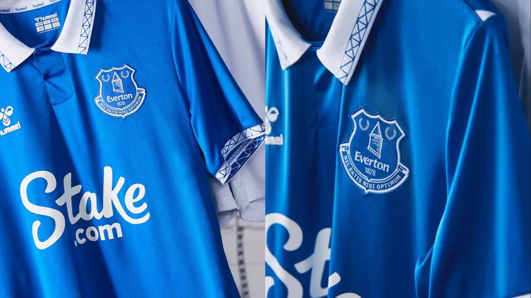 The home jersey for Everton in 2023–24 honors a beloved custom at Goodison Park and is one of their partner Hummel's most recognizable designs.