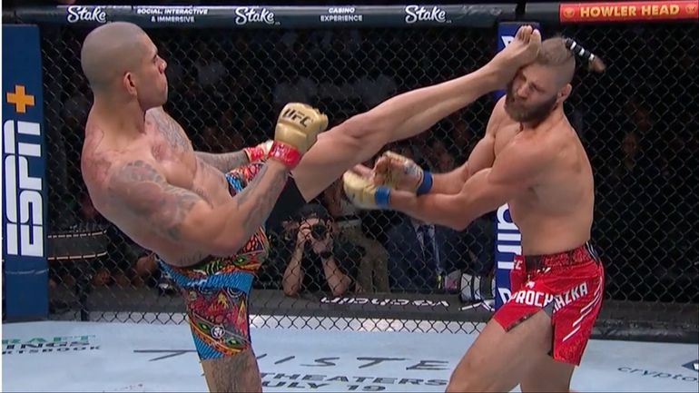 The second round began with a kick from Pereira that struck Prochazka in the head and knocked him to the ground.
