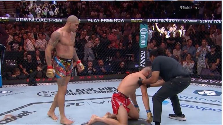 Referee Herb Dean gave the first fight extra time to go as Pereira kept hammering away with punches, despite some complaining that it may have been stopped early.