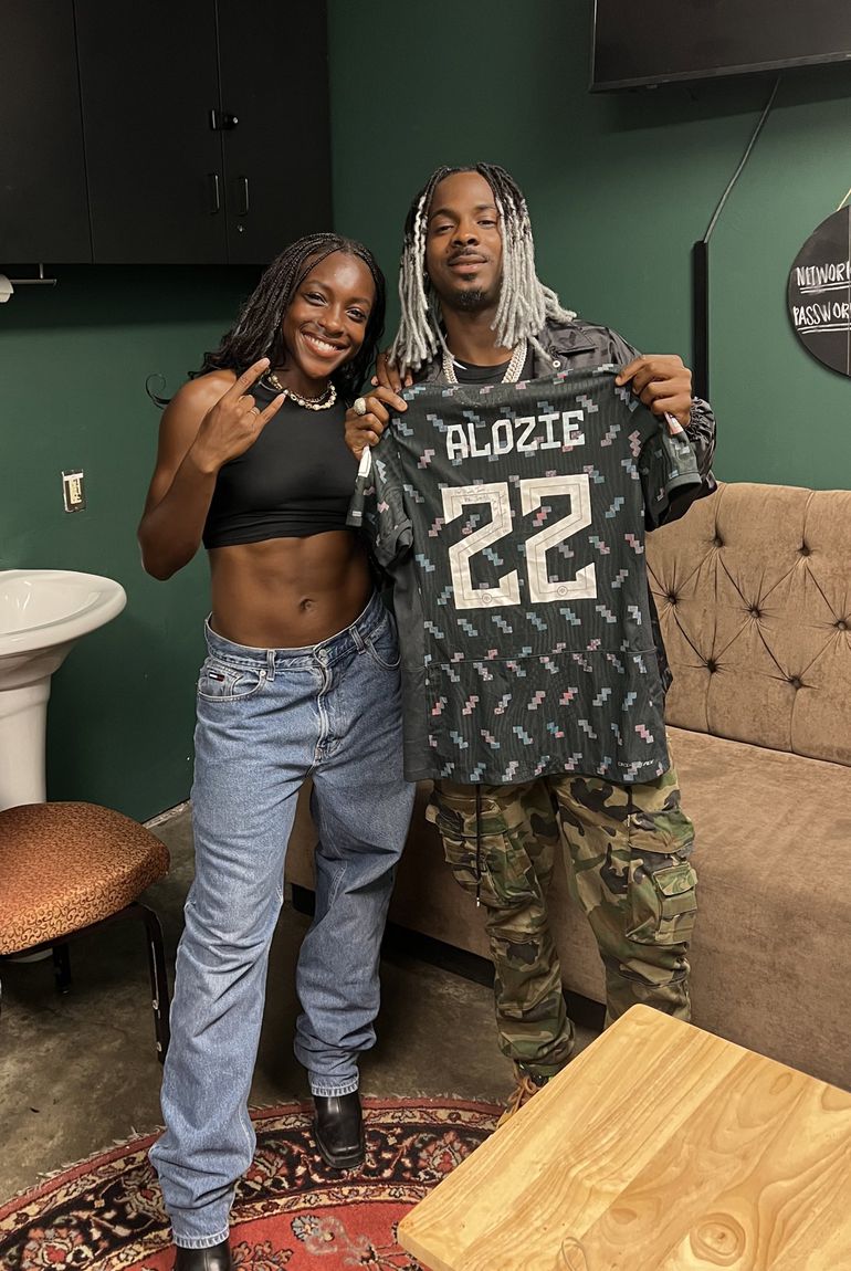 In her latest sighting, Alozie was seen backstage with Young John, reportedly backstage at the Mainland Block Party, where another of the Houston Dash star’s favourite artists, Davido, also performed.