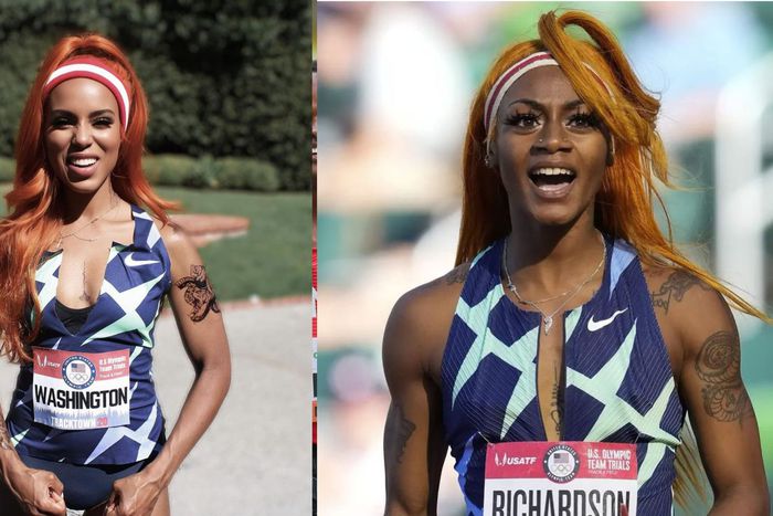 The costume was nearly identical to the zigzag outfit Richardson wore to the track and field team trials back in 2020, where she won the women's 100m race in style.