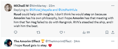 There have been reports that Amorim may discharge Ruud but Manchester United fans made their thoughts known on social media that they want the club legend to stay.