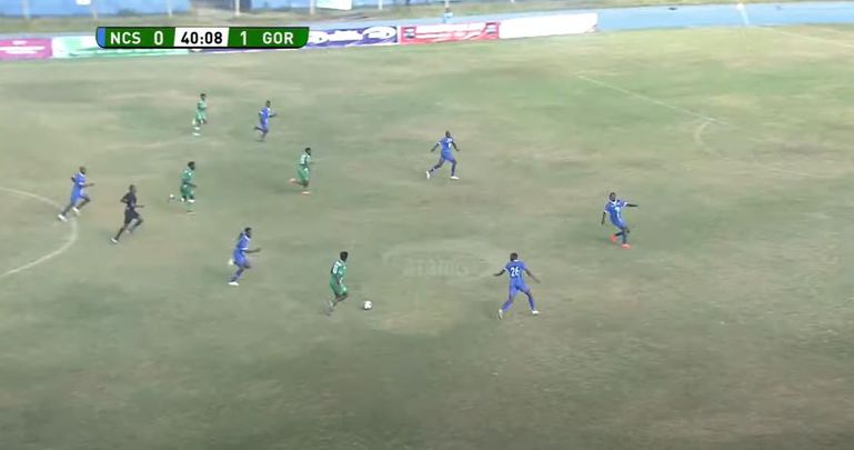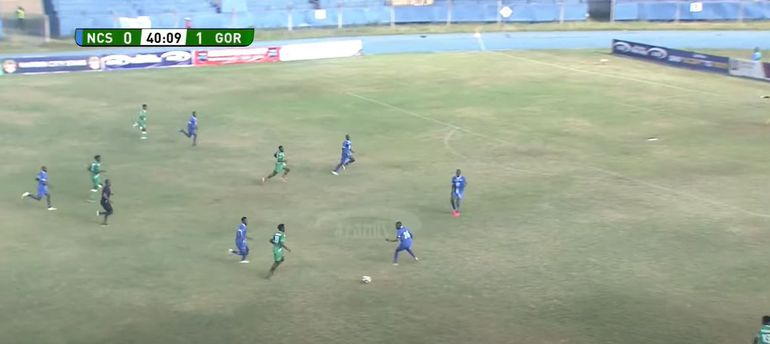 On so many occasions, Gor Mahia were using him as a focal point upon which he would receive the ball on the half turn and then hold on to it before allowing runners to get into good positions to influence the game, and another was in the 40th minute.