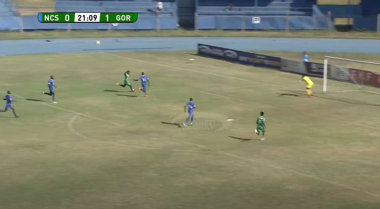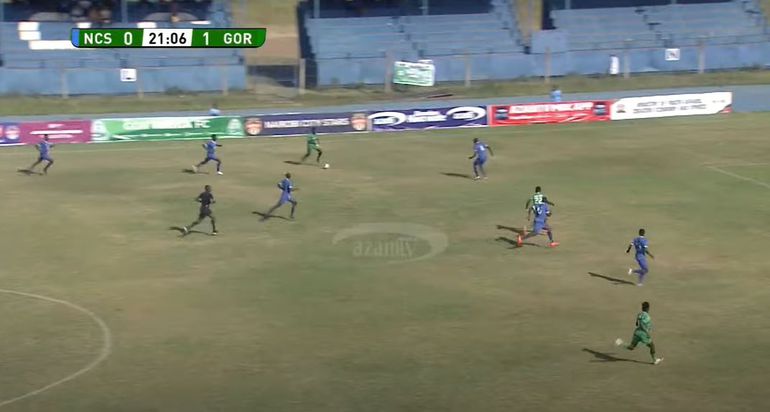 Odhiambo then spots Shariff Musa set to make a run, having noticed that Stars left back Dennis Wanjala is ball watching and not aware Musa is set to make the run.