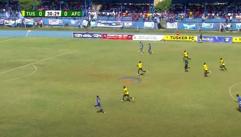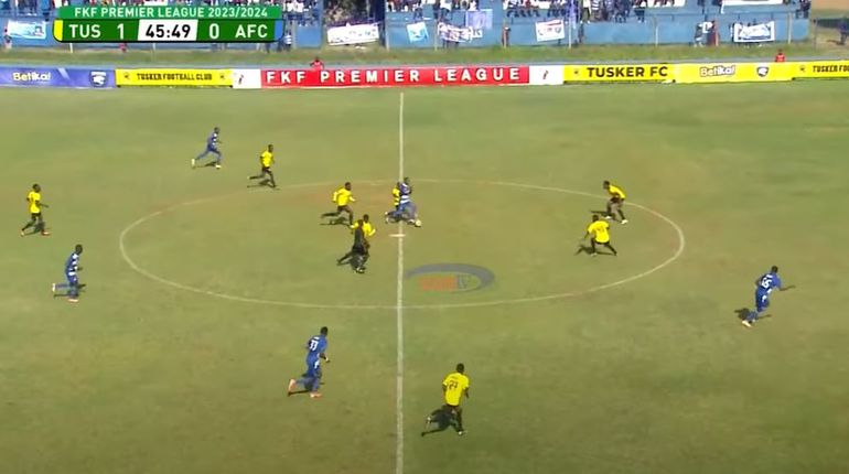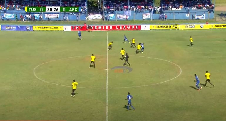 This would force the fullbacks into hitting long balls over the top to find Leopards striker Arthur Gitego as seen in the 29th minute, and the Tusker center-backs made sure to be commanding on the afternoon.