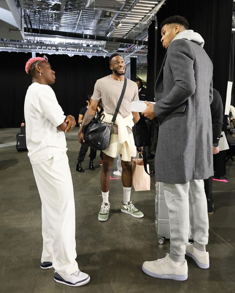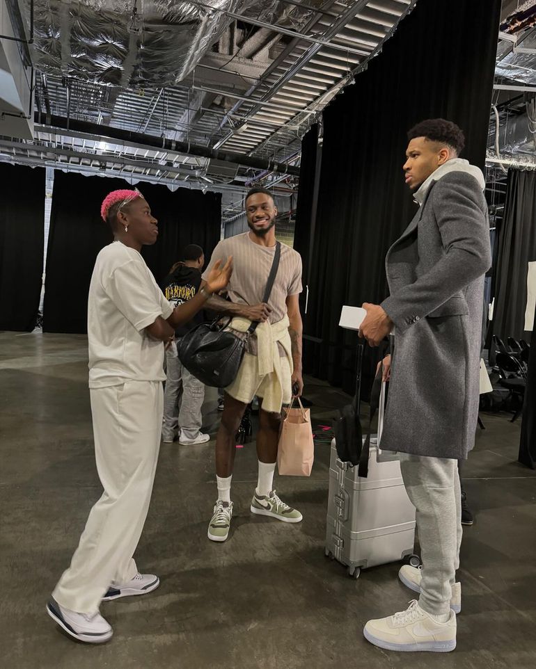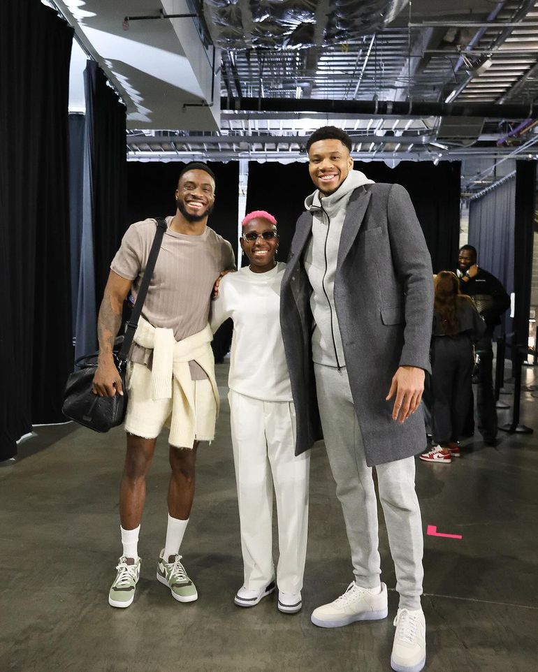 The photo of Oshoala, Giannis, and Thanasis took place at a Milwaukee Bucks game and has gone viral on social media.
