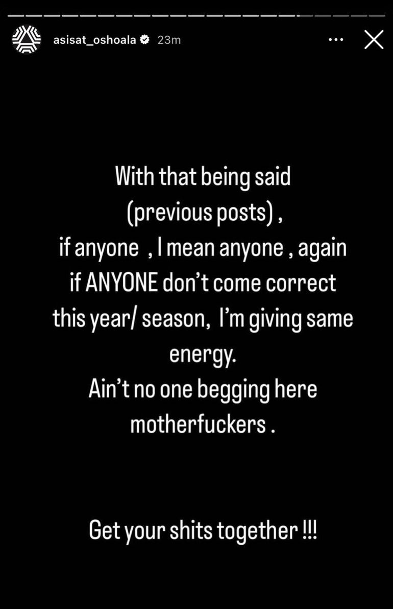 Oshoala wrote: 'If anyone, I mean anyone, again if ANYONE don’t come correct this year/season, I’m giving same energy.