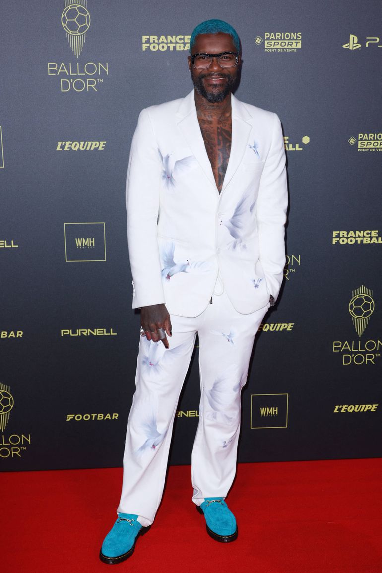No football player, past and present, may ever outdo Cisse’s fondness for anything brightly coloured. The flamboyant ex-Liverpool striker caught the eye with his white suit and blue suede loafers, matching his hair colour.