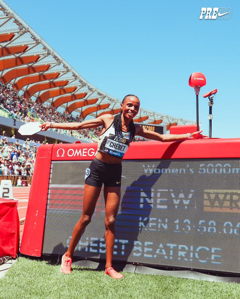 Eugene has been good to Chebet over the last 12 months as she also broke the 10,000m record in the American city last year when qualifying for the Olympics, where she won gold in both races.