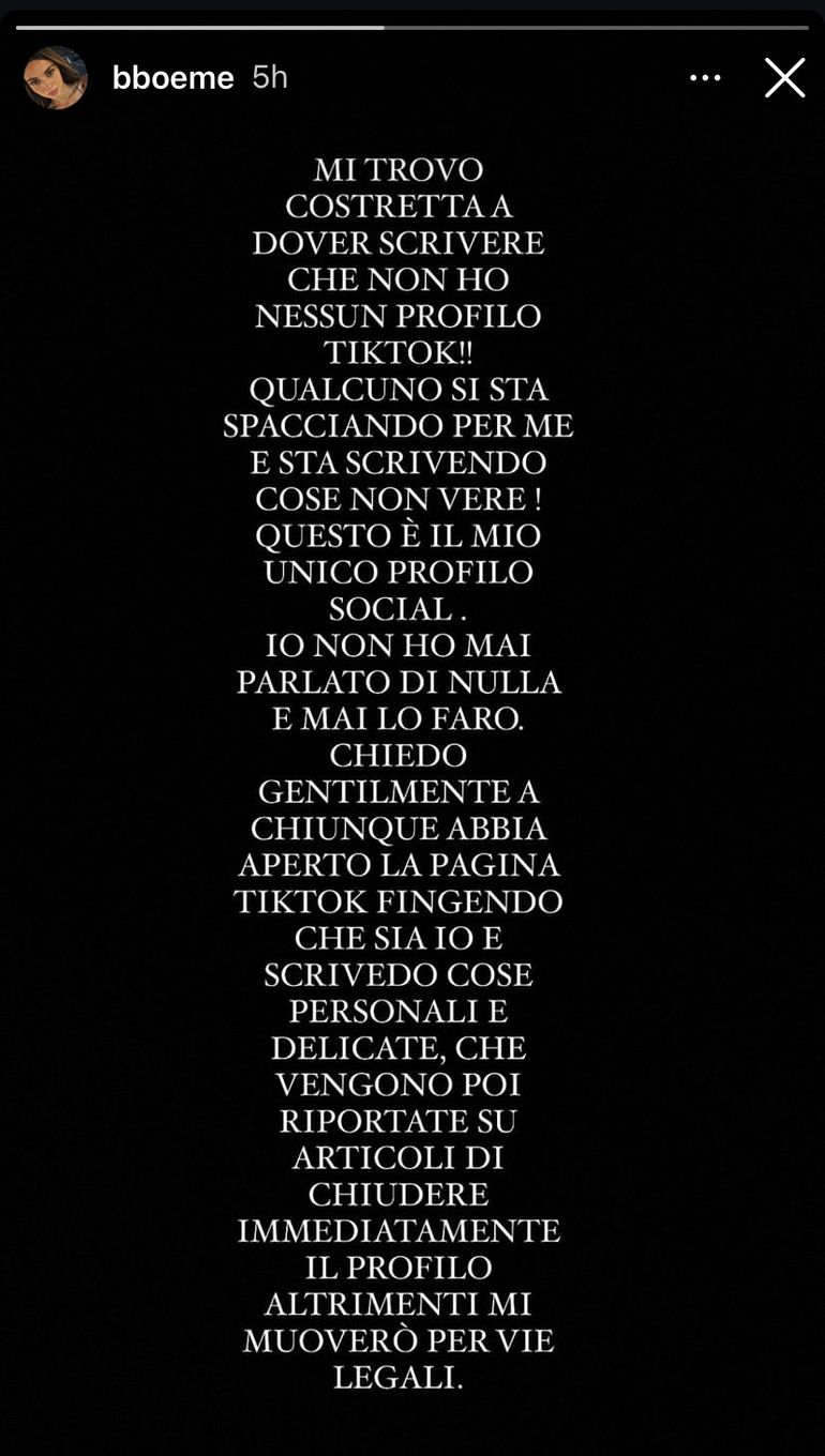 “I KINDLY ASK ANYONE WHO HAS OPENED THE TIKTOK PAGE PRETENDING IT IS ME AND WRITING PERSONAL AND DELICATE THINGS, WHICH ARE REPORTED IN ARTICLES TO CLOSE THE PROFILE IMMEDIATELY OTHERWISE I WILL TAKE LEGAL ACTION.”
