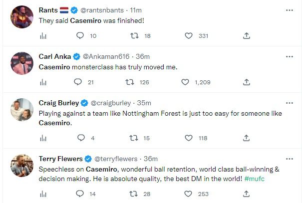 Following the emphatic victory for Manchester United, fans have singled out Casemiro on social media for special praise.