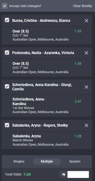 Bet9ja 7 odds accumulator for Australian Open WTA