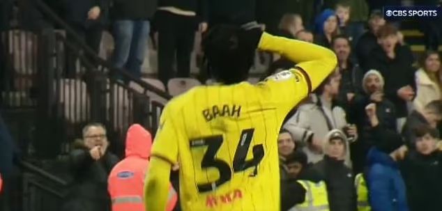 Watford's Kwadwo Baah stole headlines for all the wrong reasons despite his side’s 2-1 victory over Portsmouth on Boxing Day.