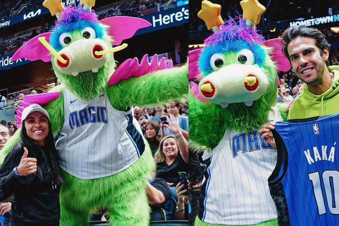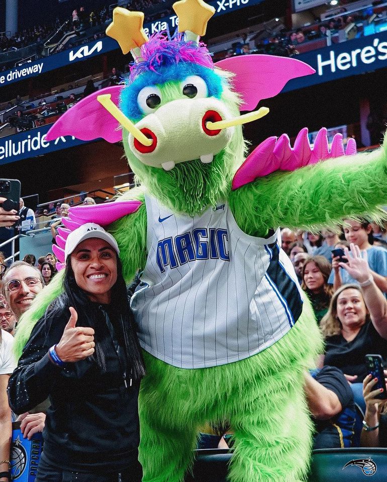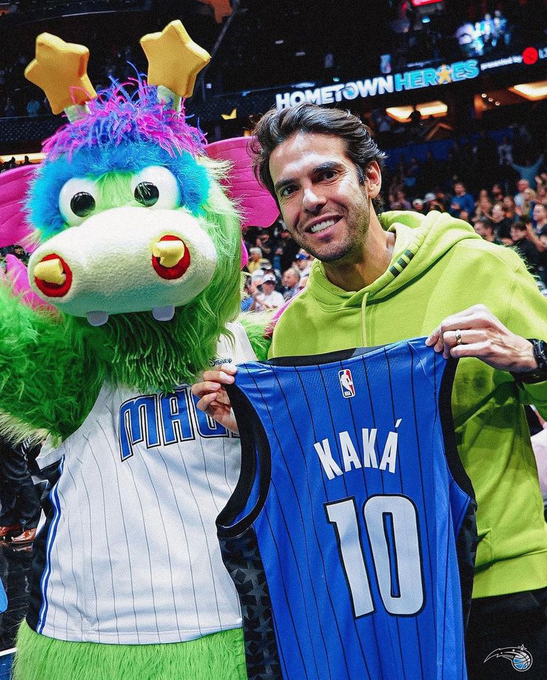 Kaka was gifted an Orlando Magic jersey with his name and the legendary number 10 by their mascot. Marta posed for a picture with the mascot but did not receive a jersey.