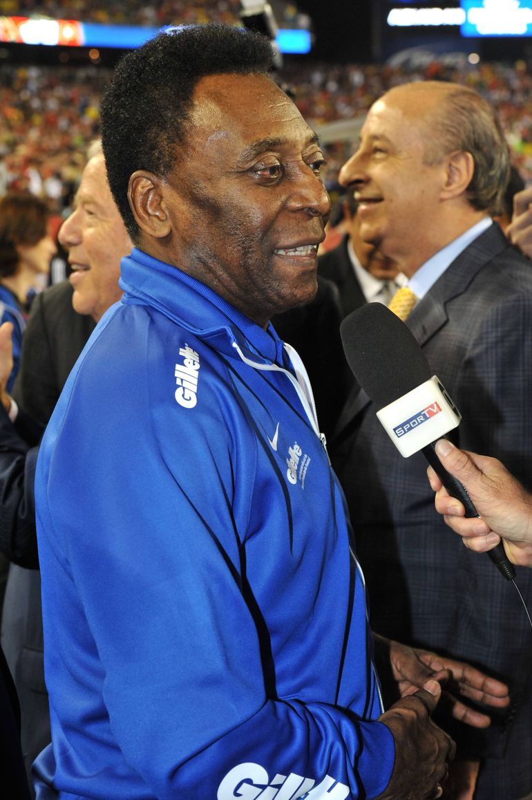Legend Pele talks to the media during the Brazil game against Portugal at Gillette Stadium in Foxborough on September 10, 2013.