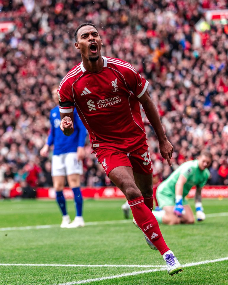 Ryan Gravenberch celebrates against Everton. (Photo Credit: RGravenberch/X)