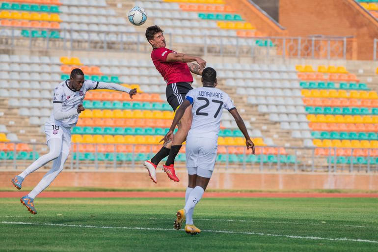Giancarlo Rodriguez attempting to head against Jwaneng Galaxy|Vipers sc image