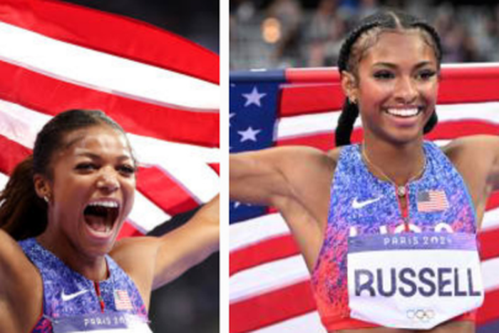 American Olympians Gabby Thomas and Masai Russell, who both won gold at the 2024 Paris Olympics, shared a beautiful moment ahead of their participation in 2025 Grand Slam Track.