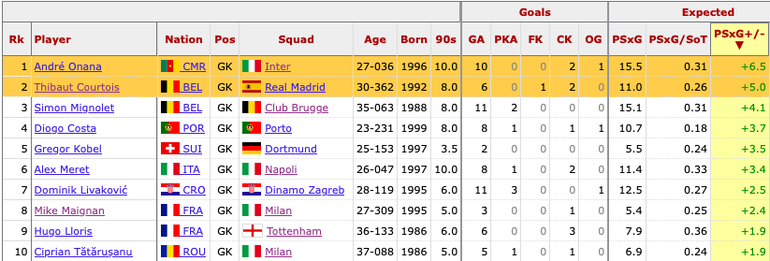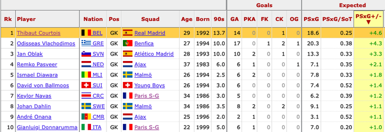 Perhaps even more impressive was the advanced analytics that showed the Real Madrid goalkeeper prevented almost five goals based on the quality of shots faced, outdoing everyone in the competition.