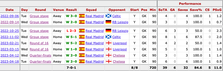 Is Courtois even better in Europe in 2022-23?