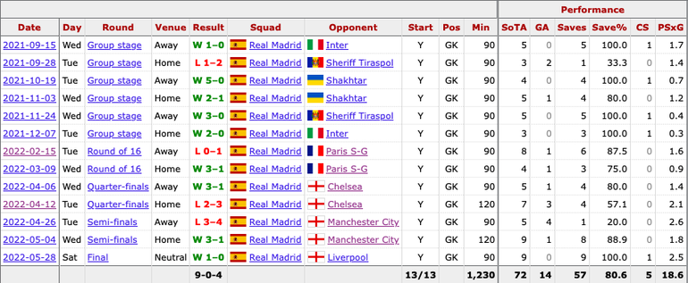 Courtois' impressive 2021-22