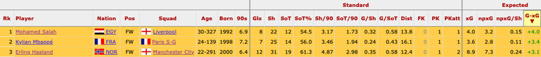For clarity, Benzema (53.3%) and Kylian Mbappe (56%) fall short of the sharpshooter, who has scored three goals more than expected heading into the semi-final. Interestingly, only the PSG man (3.4) and Salah (4.0) have outdone the City marksman for outscoring their projected numbers.