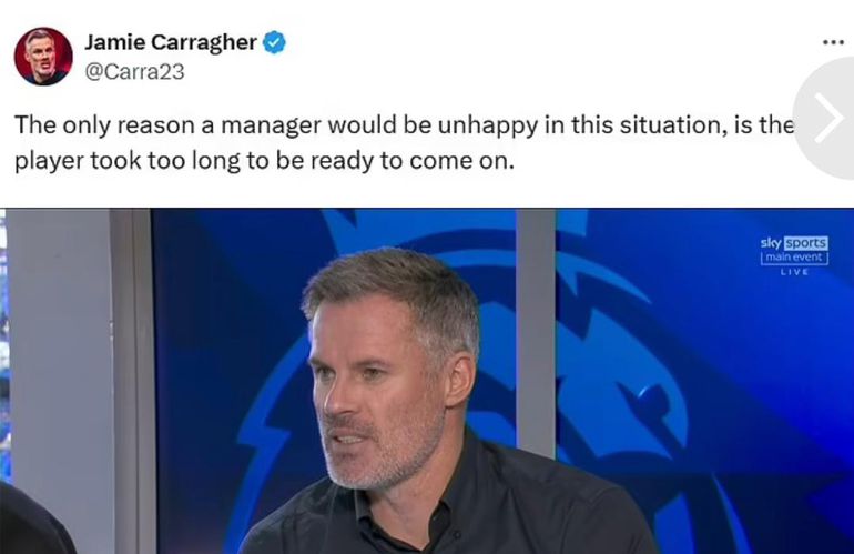 Taking to X, Carragher said, "The only reason a manager would be unhappy in this situation, is the player took too long to be ready to come on."