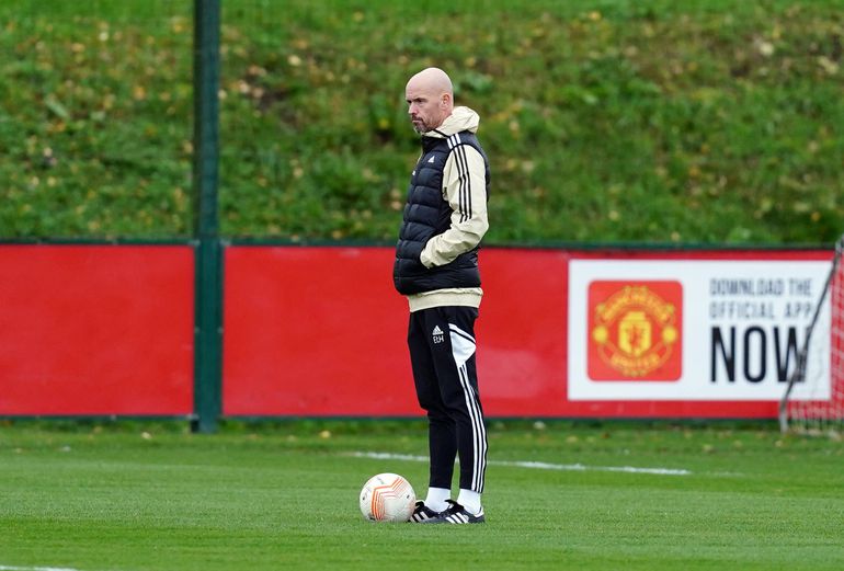 Manchester United manager Erik ten Hag during a training session at the Aon Training Complex on November 2, 2022.