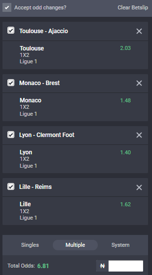 Total odds on Bet9ja: 6.81 odds