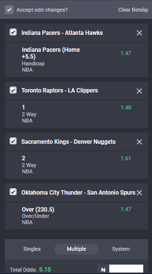 We have for you a 5-odd accumulator from the NBA games, and hoping for a green weekend.