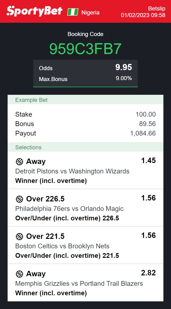 Sportybet odds for the NBA