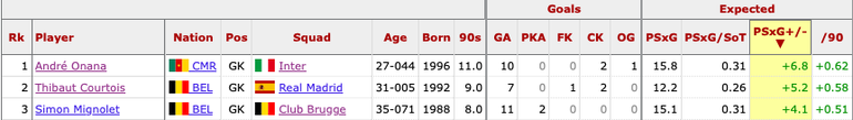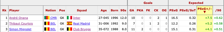Nevertheless, the underlying numbers showed that Onana prevented more goals than any goalkeeper in the competition, even if a misjudged Dani Carvajal cross saw Marco Asensio divert home from close range for a 2-1 Los Blancos win in Amsterdam.