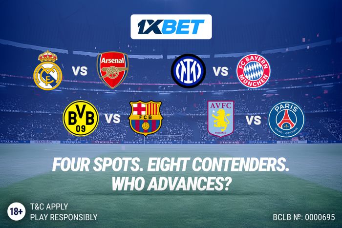 The best sports betting site, 1xBet, offers high odds and various betting options for the second leg of the most important European club tournament quarterfinals. Follow the principles of responsible gaming, place bets via the link, and share the victory with your favorites!